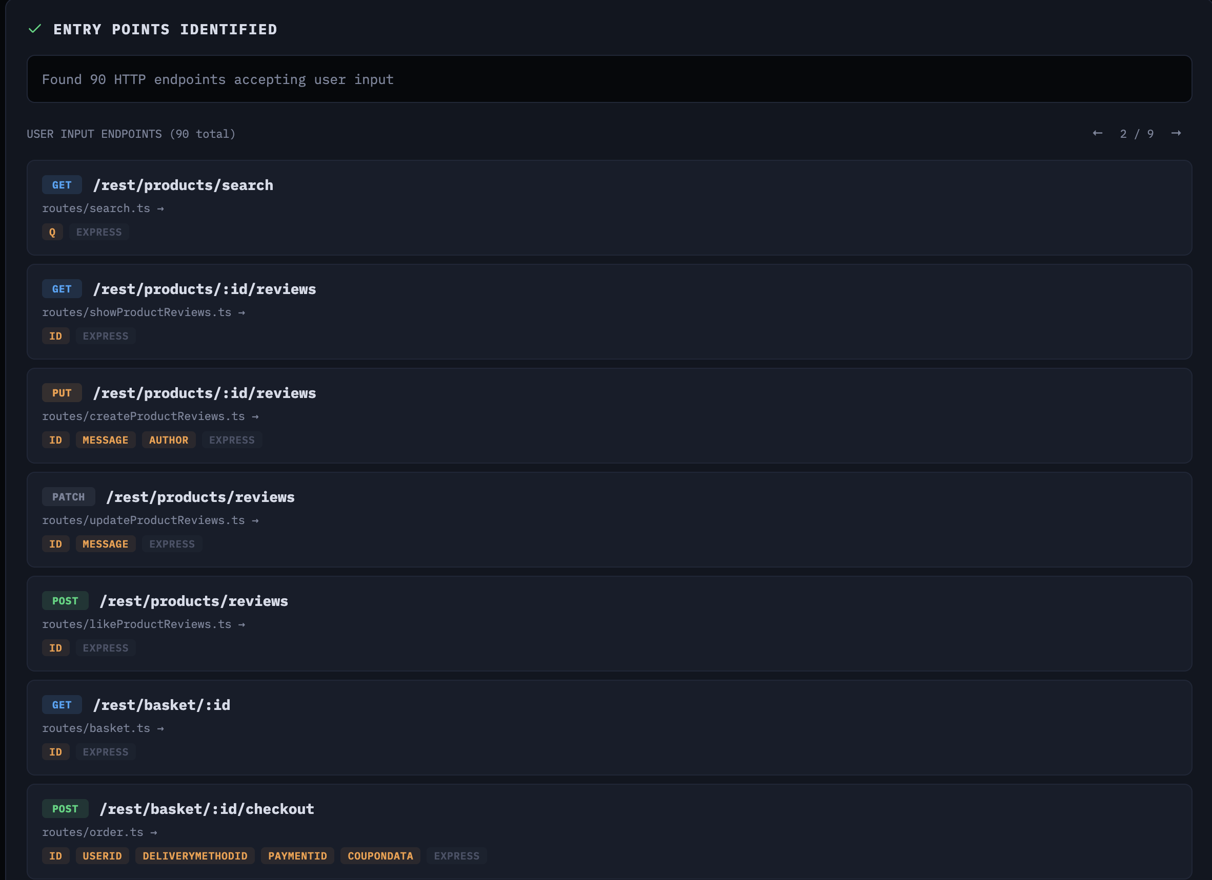 90 entry points identified across the Express.js backend
